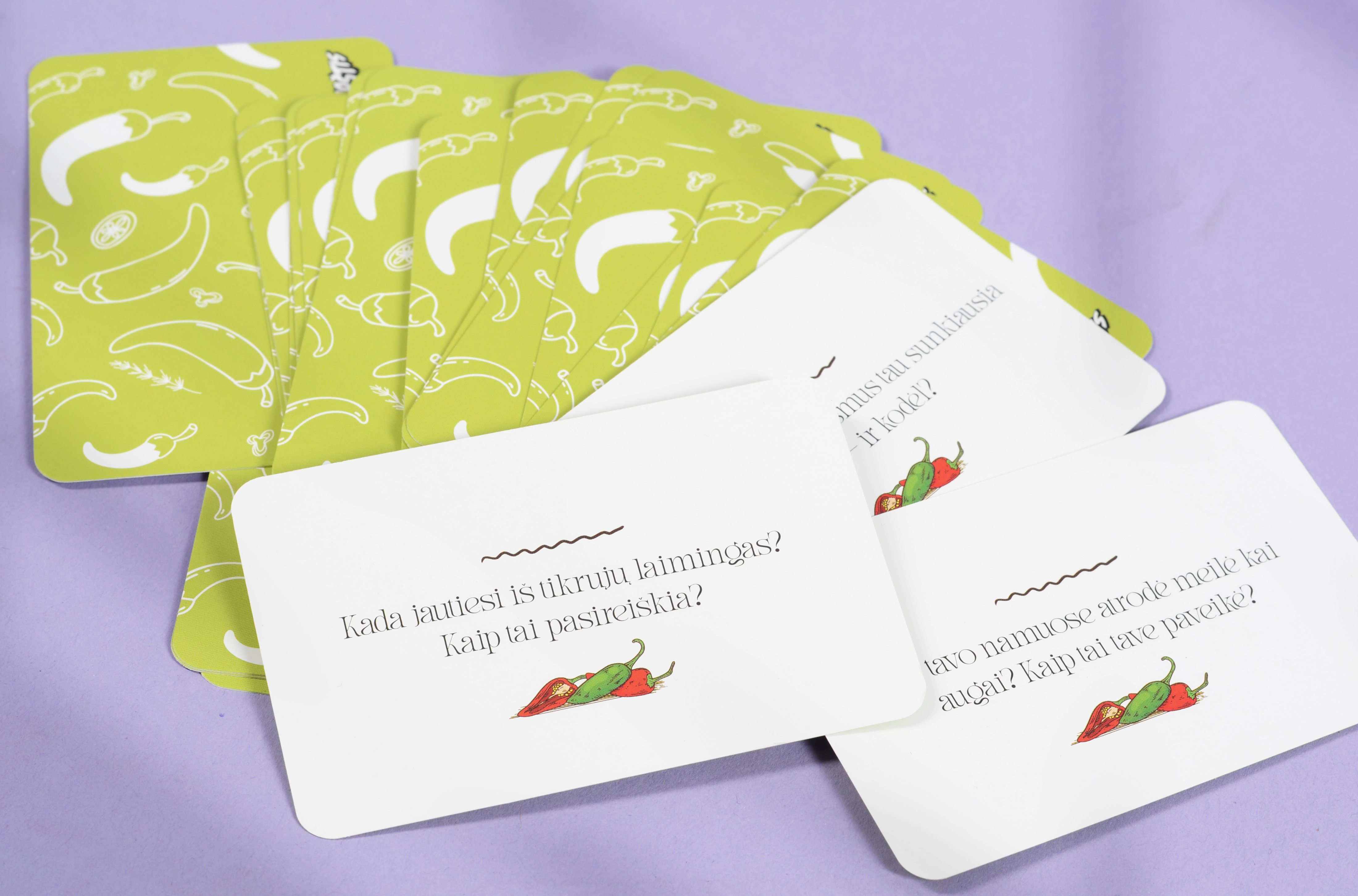 4 skirtingos veiklos – 2 stalo žaidimai bei 2 pokalbių kortelių žaidimai.